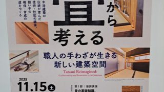 11月15日、職業能力開発短期大学校・東京建築カレッジ様よりご依頼をいただき、「畳から考える 職人の手わざが生きる新しい建築空間」という講演を、新宿区のけんせつプラザ東京にて行いました。公開講座として開催され、一般の方、建築関係者、建築を学...
